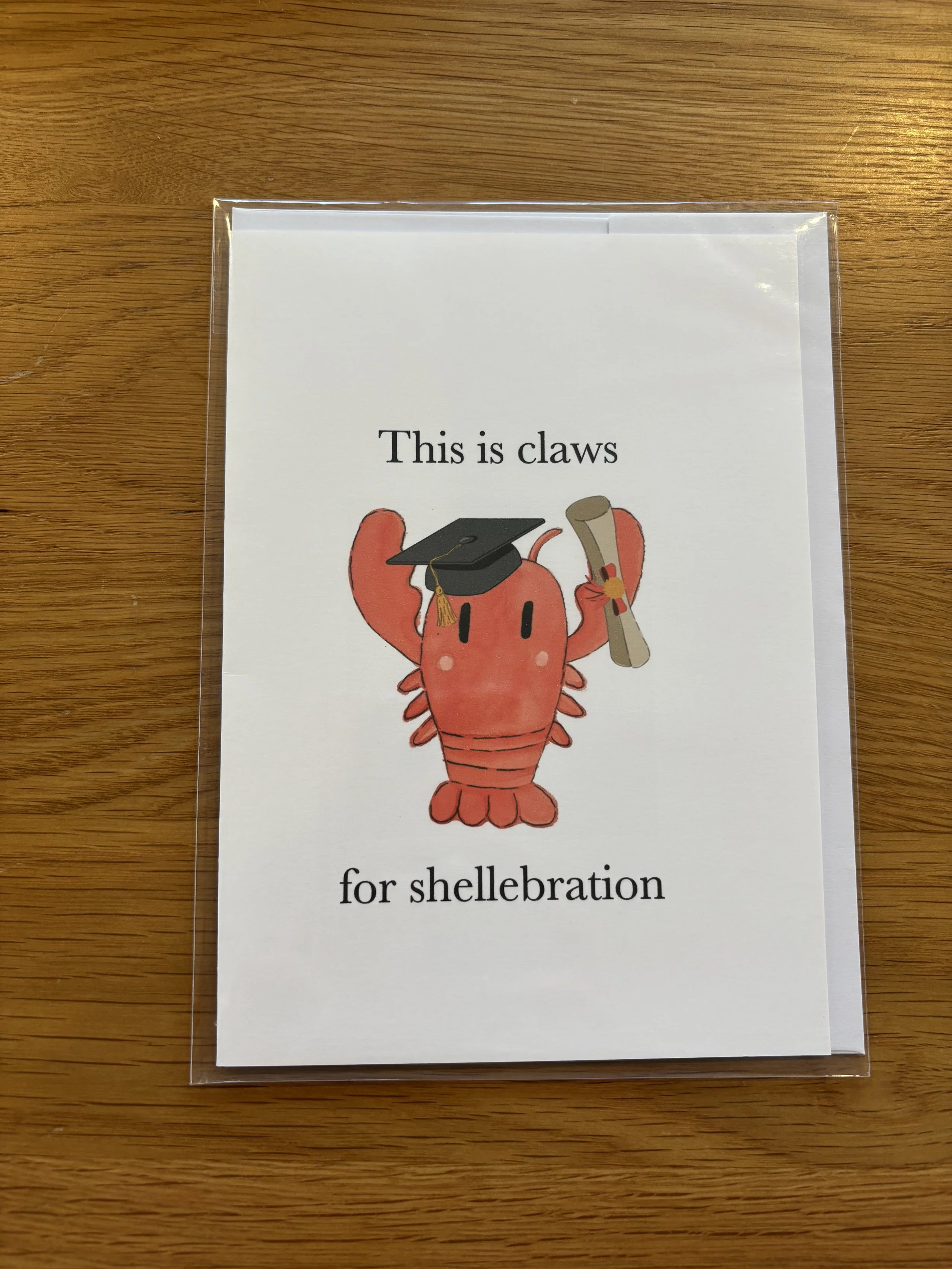 Categories: Select a Category Get well soon Congratulations Love / Anniversary Birthday Cards Thinking of you Cards Graduation Cards Wedding Cards Greeting Cards Holiday Cards Thank You Cards Graduation Cards The world is your oyster card $5.00 Claws for shellebration card $5.00 Later alligator card $5.00 A toast to your graduation card $5.00